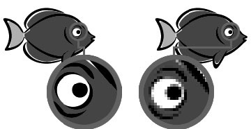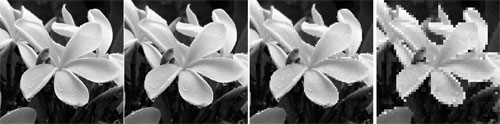 Pixel-Theorie: Adobe Photoshop CS, verständlich erklärt - Teil I Lesen Sie im ersten Teil unseres Features über Photoshop CS das wichtigste was Sie über digitale Bildbearbeitung wissen müssen. Pixel-Theorie Was Sie über digitale Bildbearbeitung wissen müssen Was ist der Unterschied zwischen Pixel und Vektor? Was ist die Auflösung? Wie funktioniert der Dialog Bild Bildgröße? Was ist RGB und was CMYK? Wie komprimiere ich Photoshop-Dateien? Welche Dateiformate gibt es? In diesem Kapitel werden wesentliche Themen der Bildbearbeitung zusammengefasst und erläutert. Dazu gehören unter anderem Farbräume, Alphakanäle, Eigenschaften von Pixelgrafiken und mehr. Umfangreiche Praxis in Photoshop nützt Ihnen wenig, wenn Sie nicht wissen, was Sie beim Bearbeiten von Bildern für Druck und Internet beachten müssen. Begriffe wie Auflösung, RGB, CMYK oder Farbtiefe sollten, besser: müssen, jedem ernst meinenden Photo-shop-User geläufig sein. Trotz stundenlanger, aufwändiger Retuschearbeit kann beispielsweise ein Bild für den Druck unbrauchbar werden, weil bei seiner Erstellung eine zu niedrige Auflösung eingestellt wurde. Speicherplatz Einfache Erscheinungen von Vektorgrafiken sind Linien, Kreise und auch komplexe Kurven, Flächen und Körper. Sie benötigen meist weniger Speicherplatz auf der Festplatte als vergleichbare Pixelgrafiken, da nicht jeder Punkt abgespeichert werden muss, sondern Objekt- und Konturfarben sowie Formbeschreibungen zur Speicherung der Bildinformation genügen. Vektorgrafik und Pixelbilder Digitale Bilder können grob in zwei Kategorien eingeteilt werden: vektorbasierte und pixelbasierte Bilder. In der Abbildung 5.1 sehen Sie auf der linken Seite eine Vektorgrafik, rechts eine Pixelgrafik, auch Bitmap genannt. Auch wenn die Bilder auf den ersten Blick schwer zu unterscheiden sind, so wird in der Vergrößerung der Unterschied deutlich. Bitmaps bestehen aus einzelnen Bildpunkten, während Vektorgrafiken aus mathematisch beschriebenen Formen zusammengesetzt werden. Wird eine Vektorgrafik vergrößert, so wird die Form neu berechnet, deshalb kann diese auch in der Vergrößerung makellos dargestellt werden. Vergrößert man eine Pixelgrafik, so wird diese punktweise vergrößert, da der Rechner keinerlei Objektinformation besitzt. Dadurch werden die einzelnen Pixel erkennbar. Bei einer Bitmap wird jeder einzelne Pixel unabhängig von den anderen abgespeichert. Daraus resultiert auch, dass eine Änderung der Farbe eines einzelnen Pixels problemlos möglich ist, was bei einer Vektorgrafik nur recht umst ndlich funktioniert. Es stellt sich die Frage, warum wir nicht immer mit Vektoren arbeiten, diese können beliebig vergrößert werden und benötigen ein bisschen weniger Speicherplatz, warum plagen wir uns also mit Pixeln herum? Der Grund dafür ist einfacher, als man denkt: Alle digitalisierten Fotos sind von Natur aus Pixelgrafiken. Die digitale Kamera oder der Scanner zerlegt das Motiv nicht in einzelne mathematische Kurven, sondern speichert das Bild Pixel für Pixel ab. Damit ist man von vorneherein bei der Bildbearbeitung an die Pixelgrafik gebunden. Abbildung 5.1 Links sehen Sie eine in Adobe Illustrator erzeugte Vektorgrafi k, rechts eine entsprechende Pixelgrafik. Pixel? Was heißt Pixel? Pixel ist eine Kurzform von Picture Element und bezeichnet die Punkte einer digital gespeicherten Grafik. Jeder dieser Punkte ist bei der Darstellung am Computermonitor quadratisch und hat einen eindeutig definierten Farbwert. Er ist die kleinste Informationseinheit einer Bitmap und nicht weiter unterteilbar. Vektorapplikationen Für die Bearbeitung und Erstellung von Vektorbildern werden Programme wie zum Beispiel Adobe Illustrator, CorelDRAW oder Macromedia FreeHand verwendet. Ausgabe-Auflösung und Maßeinheiten Alle digital gespeicherten Bilder haben die Form von Rechtecken und die Farbinformation (bei Pixelbildern) wird pixelweise in das Bild gespeichert. Da jedes Rechteck eine Breite und Höhe hat, trifft dies auch auf digitale Bilder zu. Es bietet sich an, die Breite und Höhe des Rechtecks in Pixeln zu messen. Allerdings stellt sich nun die Frage nach der Umrechnung in andere Maßeinheiten: »Wie viele Pixel sind ein Zentimeter?«, oder etwas konkreter gefragt: »Wie groß wird mein 300 x 300 Pixel großes Bild auf dem Ausdruck?« Überraschenderweise müssen wir Ihnen eine konkrete Antwort schuldig bleiben. Für einen Pixel gibt es nämlich keine festgelegten Dimensionen, er ist kein Längenmaß. Auf einer Riesen-Videowall kann ein Pixel Größen im Zentimeterbereich aufweisen, am Computermonitor sind es etwa 0,3 mm und im Druck ca. 1/10 mm (wobei dieser Wert symbolisch zu verstehen ist, da das Bild zuvor gerastert wird). Abbildung 5.2 Viermal dasselbe Bild bei gleich bleibender Druckgröße, aber in unterschiedlichen Auflösungen Es liegt daher nahe, mit einem festen Umrechnungsverhältnis die Pixel einer realen Maßeinheit zuzuordnen. Diese Zuordnung nennt man Auflösung. Mit ihr wird festgelegt, wie viele Pixel pro Zentimeter auf einem Ausgabemedium (Monitor, Drucker, ...) wiedergegeben werden. Da Photoshop und viele andere Bildbearbeitungen aus den USA stammen, wird für die Definition der Auflösung üblicherweise das amerikanische Längenmaß Inch (= 2,54 cm) verwendet. Wie wir oben bereits ausgeführt haben, ist die Auflösung abhängig vom verwendeten Ausgabemedium. Die Auflösung wird nämlich nach dem Prinzip »So viel wie nötig, so wenig wie möglich« festgelegt. Zu hohe Auflösungswerte bewirken nämlich auch ein Ansteigen der Dateigröße, da pro Inch mehr Pixel gespeichert werden müssen, eine zu niedrige Auflösung sorgt für unschöne Mosaik-Effekte im Bild. Für den Offset-Druck werden üblicherweise 300 dpi verwendet, Computermonitore stellen Bilder mit 72 dpi dar. Grund für diese Besonderheit sind die unterschiedlichen Betrachtungsgewohnheiten und Eigenschaften dieser Ausgabemedien. Um ein Bild in zufrieden stellender Qualität auf Papier w